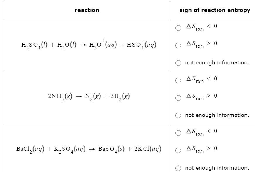| Topic: For Each Chemical Reaction Listed In The First Column Chegg Which Reactions Have A Positive ?srxn |